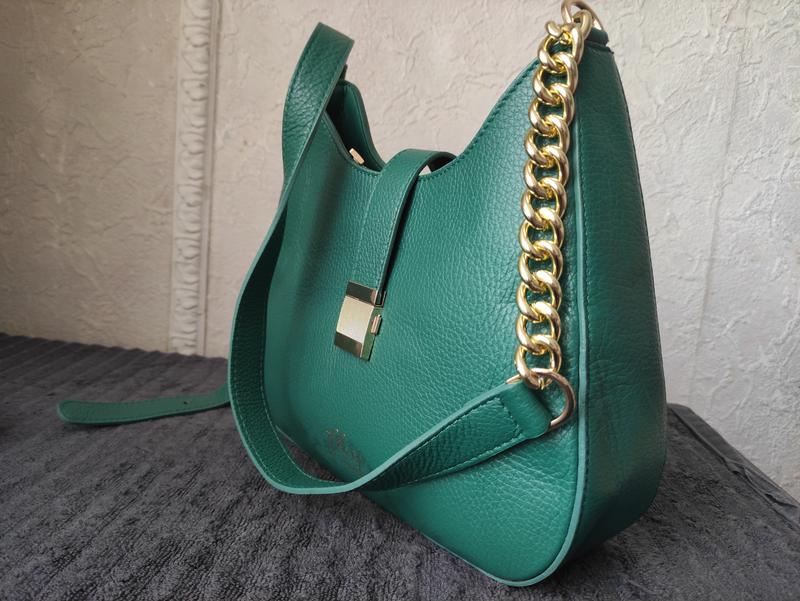 Сумка от бренда Class Davina Firenze из натуральной кожи, модель кросс-боди в просто невероятном изумрудном цвете.Замеры: высокая от цепочки 25, ширина 28,низ 9.Сумка в идеальном состоянии но есть пятна на коже (на последних двух фото максимально видно) жизни почти не заметны.Подклад чистый и супер качества (прочный и плотный) шоколадном цвете.