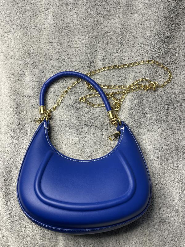 Женская сумка синего цвета твердая, держит форму