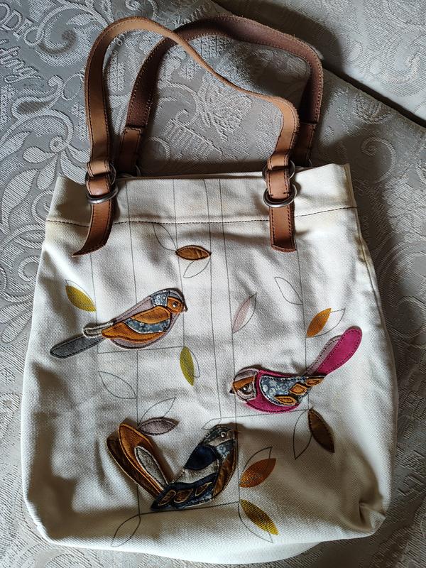 Сумка шопер. Фирменная, вместительная сумка, плотный котон, кожаные ручки. ( есть нюанс на 4 фото, разводы)