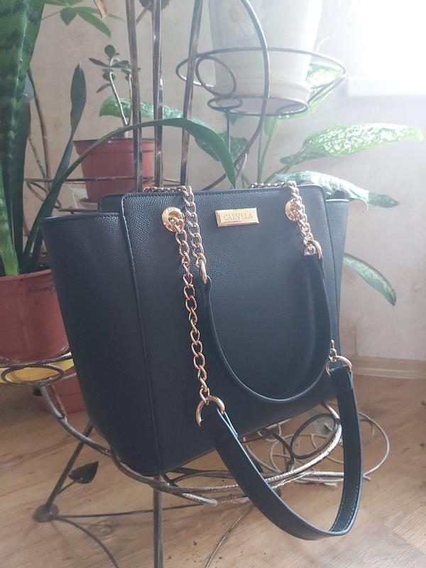 Сумка из эко-кожи,хорошого качества, достаточно объемная и стильная, черного цвета, подойдет практически под любой образ.Стан новой вещи. Замеры: Высота-24 Ширина-25/35 Дно сумки-12. Ручки-60