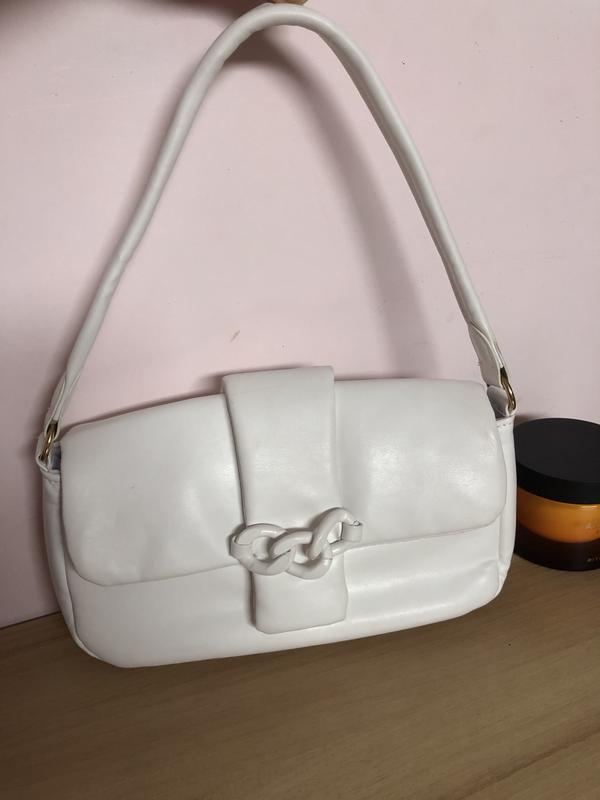 Стильная красивая белая сумка багет Содержимое и удобное Имеет нюанс на остановке фото