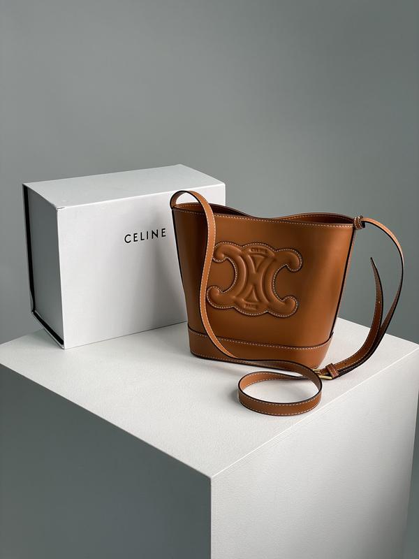Сумка женская celine 💎 small bucket cuir triomphe in smooth calfskin tan brown ki99091