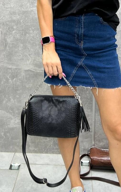 Сумка через плечо кросс-боді: удобство и стиль на каждый день Сумка на плечо - это идеальный выбор для тех, кто ценит комфорт, функциональность и модный дизайн. Представляем женскую сумку кросс-боді, изготовленную из экокожи со стильным змеиным принтом, которая станет вашим любимым аксессуаром для любых событий. Основные характеристики модели : Материал: высококачественная экокожа с утонченным змеиным принтом, что добавляет вашему образу индивидуальности и элегантности. Размеры: 24х15х8 см - компактный формат, который позволяет вместить все необходимые вещи, не занимая лишнего пространства. Количество отделений : два отделения на молниях - идеальные для организации и безопасного хранения ваших вещей. Дополнительные карманы: внутренний карман на молнии и внешний карман на обороте обеспечивают еще больше пространству для пустяков. Ремешок: регулируемый, с максимальной длиной 135 см, что позволяет настроить его под ваши потребности. Перед заказами уточняйте наличие по цвету ******************************************************* Отсылка по Украине новой и укрпочтой. Есть накладная плата за предоплату за доставку! Ассортименты сумок, рюкзаков пополняется ежедневно подписывайтесь, чтобы следить за новинками. У нас всегда можно приобрести: