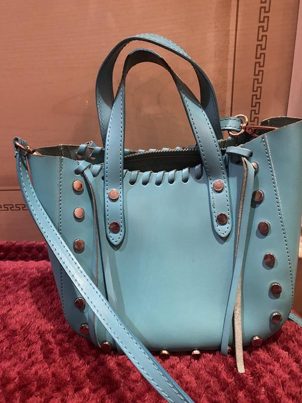 Сумочка жіноча літо-весна яскраво-бірюзового кольору. Всередині карман-гаманець з натуральної шкіри. Виробництво Італія.