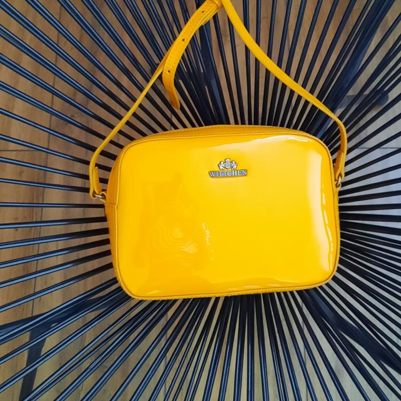 Отличная маленькая сумочка из лакированной темно-желтой кожи добавит красок в ваш гардероб. Маленькая, но достаточно вместительная