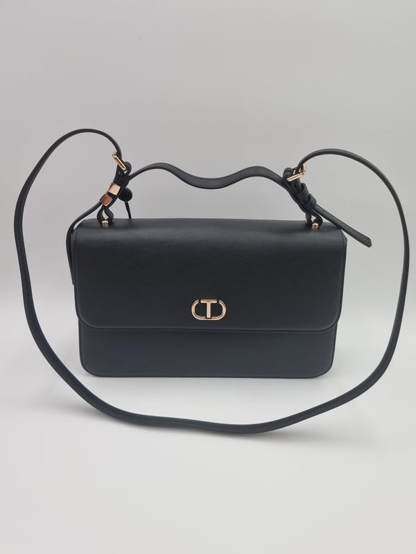 Среднего размера сумочка из коллекции Twinset. Застежка модель выполнена из искусственной кожи. - Магнитная застежка. - Три внутренних кармана: один застегивается на молнию, два - накладные. - Модель с подкладкой. - Не рассчитана на формат А4. - Имеет ручку и несъемный регулируемый ремень. - Сумка для ношения через плечо или в руках. - Добавляется текстильный мешок, который защищает товар от пыли. - Минимальная длина ремня: 102 cm. - Максимальная длина ремня: 128 cm. - Длина ручки: 34 cm. - Глубина: 8 cm. - Высота: 17 cm. - Ширина у основания: 29 cm. Есть пыльник Оплата на карту.