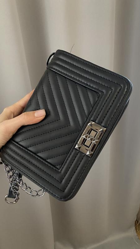 Небольшая сумочка черного цвета, внутри одно отделение красного цвета и маленький кармашек на замочке Вместительная