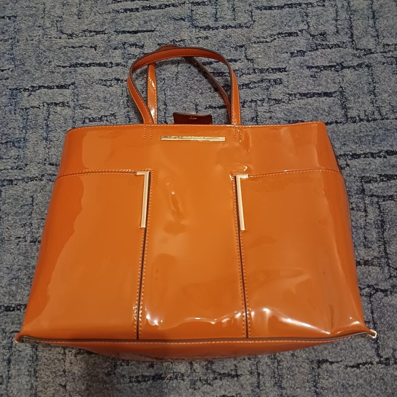 сумка по размерам неделенькая. спереду два кармана внутри есть одна перегородка - карман есть карманчик доя телефона цвет оранжевый-кирпич