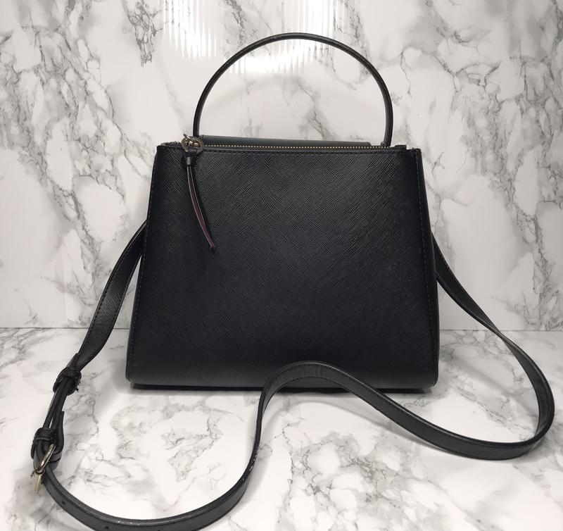 Довжина 28 см, ширина 22 см, глибина 14 см. Дефекти- незначні потертості та відсутній один зажим для маленького ремінця.