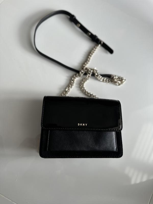 Сумочка DKNY.Лак,шкіра,замш. Оригінал.Стан 8 з 10.спереду там де лак є трохи втиснення, прикріпила фото, але не під кожним кутом як дивишся видно. В хорошому стані, фурнітура також в гарному стані.Є пильник.