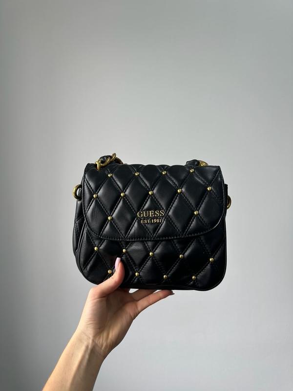 Размер: 22 х 16 х 8 см Материал: Кожа Сумка выполнена из гладкой кожи, прострочена, с металлическими пинами. Внутри два отделения, есть также карман на застежке. Подкладка из брендированного текстиля. Закрывается отделение на магните-клапане. Ремешок для ношения через плечо из эко кожи, с регулируемой длиной. Комплектуется в брендированной коробке и пыльнике. Арт: 99058