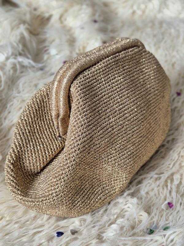 Сумка ручной работы, выполнена золотыми нитями крючком. Закрывается на металлический фермуар, имеет подклад. Будет служить Вам отличным аксессуаром на любой праздник.