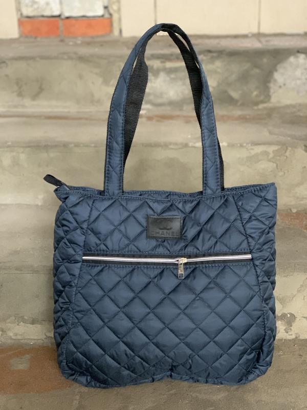 Классическая стеганая сумка из плащёвки; Формат А4 ; Две удлиненные ручки; Внутри одно большое отделение с карманом на молнии; Спереди также есть карман на молнии; 📐33*11*34 см;