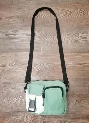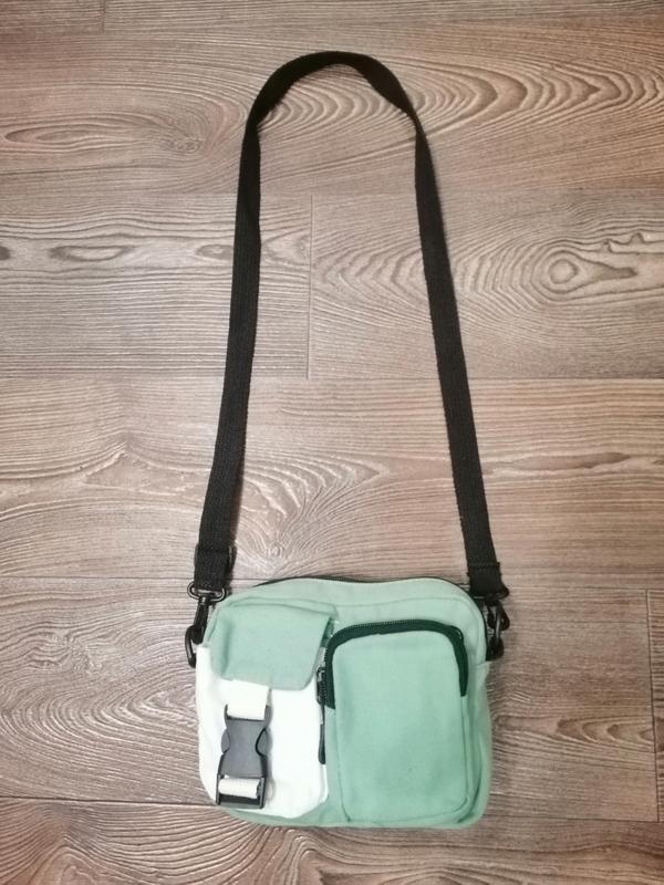 Холщовая сумка H&M зелено-белого цвета на молнии, в идеальном состоянии.