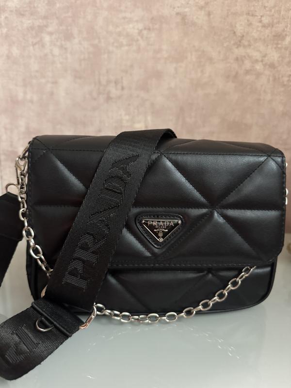 Чорна сумка з ромбовим тисненням, ланцюговим ремінцем та текстильною ручкою. В ідеальному стані, стильна та зручна для щоденного використання!