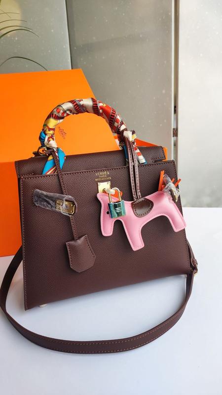 Сумка в шоколадном цвете в стиле келлы, 24 см