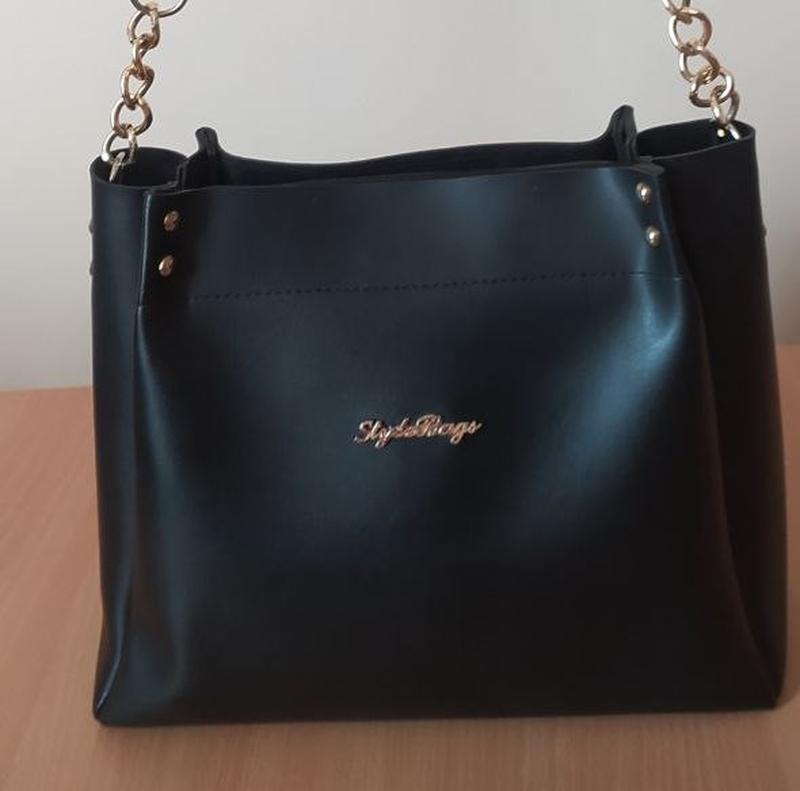 Сумка черного цвета, заменитель кожи Высота - 24 см Ширина - 30 см Глубина - 12 см Внутри одно отделение, + дополнительные карманы Ручка одна, длинная, 96 см