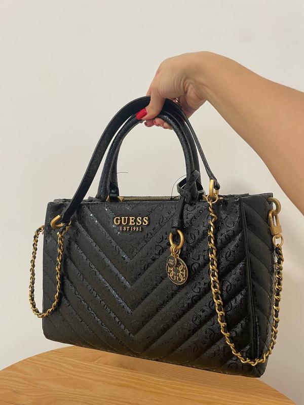 Среднего размера сумочка из коллекции Guess. Застежка модель выполнена из текстильного материала. - Модель с двумя отделениями. - Отделение застегивается на молнию. - Количество внутренних накладных карманов: 2. - Внутренний карман на молнии для безопасного хранения телефона или других мелких вещей. - Имеет ручки и съемный нерегулируемый ремень. - Сумка для ношения через плечо или в руках. - Не рассчитана на формат А4. - У комплекті чохол. - Модель с подкладкой. - Длина ремня: 125 cm. - Длина ручек: 33 cm. - Глубина: 11 cm. - Высота: 21 cm. - Ширина у основания: 31 cm.