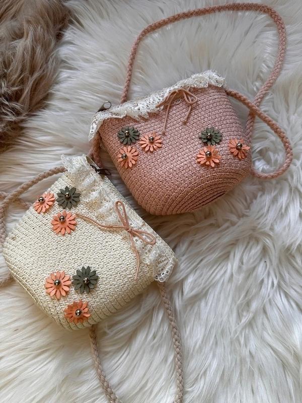 🎯В НАЯВНОСТИ 325 грн 📝 Детская соломенная сумочка👜 🖤 На одно плечо 🖤 Украшена цветочками и бусинками 🖤 Закрывается на замочек 🖤 Один отдел 8 розовых 4 белых