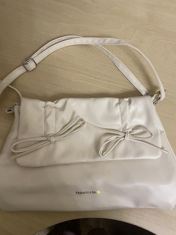 Белая сумка из искусственной кожи, вместительная и имеет карманы