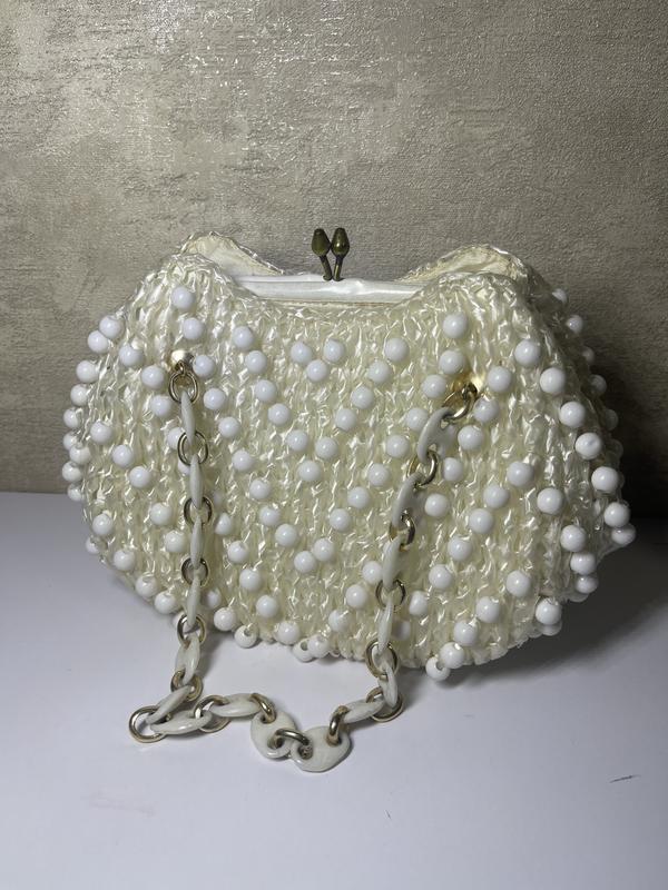 Маленькая белая бисерная сумка. Употребленное, состояние хорошее, без дефектов. Закрывается на заклепку.