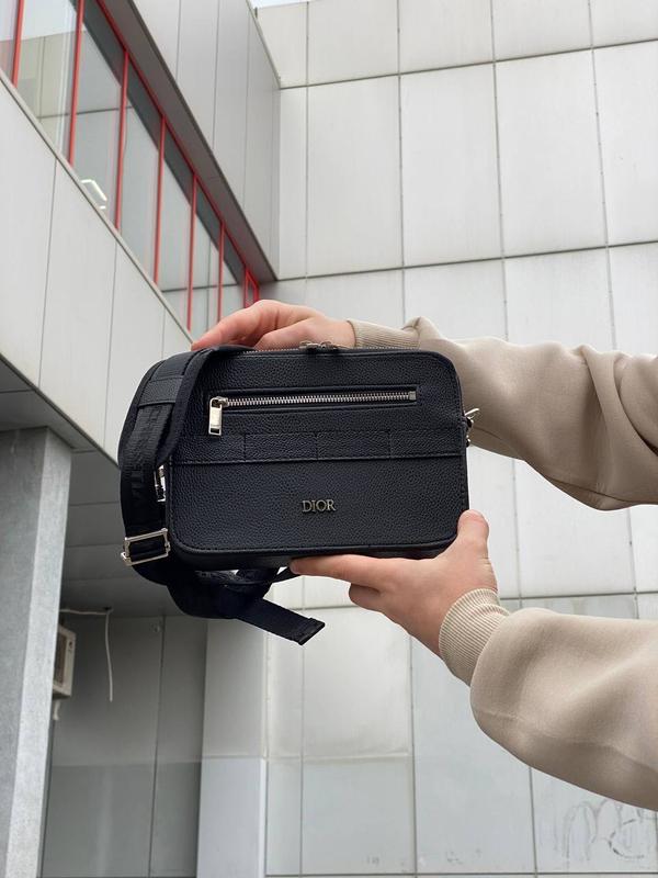 ⚜️ Сумка месенджер Christian Dior 📌Размер 24x16x6 см 📌Материал: эко кожа 📌Цвет: черный 📝Описание: Сумка изготовлена из эко кожи. Имеет одно большое основное отделение, на стенке есть кожаная нашивка с брендовым тиснением, а также 6 отделений для карточек. На лицевой стороне есть еще один карман на молнии. Фурнитура и карабины с гравировкой бренда. Ремешок текстильный брендированный, имеет регулируемую длину до 120 см. 📌Комплектация: брендовая коробка Christian Dior