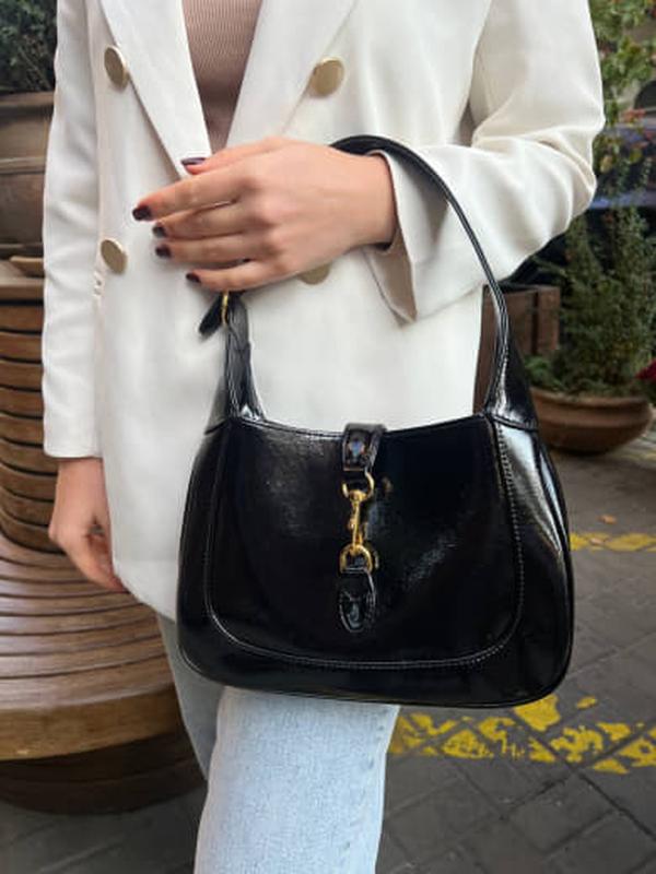 📐 Размер: 26 х 18 х 4 см. 🧵 Материал: Кожа 🔎 Описание: Модель изготовлена из черной натуральной кожи с лаковым покрытием, дополнена фурнитурой светло-золотистого оттенка и культовым красно-зеленым ремнем, что позволяет легко адаптировать аксессуар к различным образам. Внутри - карман на молнии с язычком в виде герба Gucci. Сумка оснащена съемным плечевым ремнем высотой 52 см и кожаной ручкой высотой 18 см. Застежка-защелка завершает изысканный дизайн, подчеркивая классику и удобство легендарной модели. В комплекте брендовая коробка на магнитах, пыльник, буклеты. Артикул 05008