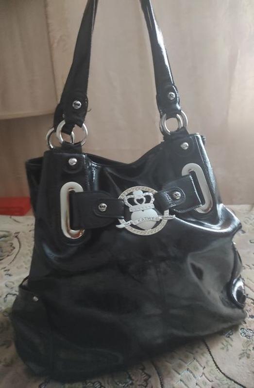 Сумка лакированная в хорошем состоянии 30-35 см на три отдела, длина ручек 22 см, карманы есть еще по бокам.