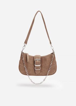 Описание товара светло-коричневая сумка-хобо с пряжкой и декоративной цепочкой. Изготовлена из кожзаменителя с потертостями в винтажном стиле, модель имеет съемный ремень, основное отделение на молнии и застежке и карман для документов, ключей или бумажника внутри. Все серебряные металлические детали, контрастная строчка на сумке и ремешке. Размеры изделия: 25 см х 12 см х 6 см Длина ремешка сумки: 50 см