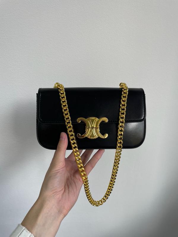 Celine Chain Shoulder Bag Claude In Shiny Calfskin Black (Арт: K99085) 20.5 x 11.5 x 4.5 см Шкіра Сумка виготовлена з гладкої шкіри, вона не матова, може трохи відблискувати. Всередині одне відділення, також є невеличка кишеня. Підкладка у сумки з чорної шкіри, з брендовим тисненням. Фурнітура якісна металева, брендована. Ремінець для носіння через плече з металевого золотого ланцюжка, фіксованої довжини. Комплектується у брендованій коробці на магнітах та пильовику, також є буклетик. Більше фото можу надати в приватні Оплата зручним для Вас способом. Відправка Новою Поштою щодня.