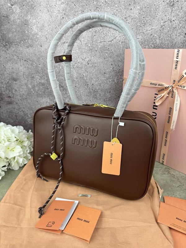 ⭐️PREMIUM ⭐️ Miu Miu Brown Арт. P17015 ▫️Материал: кожа ▫️Размер: 30x18x9 см ▫️Одно отделение + карман ▫️Внутри лого ▫️Текстильная подкладка ▫️Металлическая брендированная фурнитура ▫️Комплектуется в брендированную коробку на магнитах, пыльник,