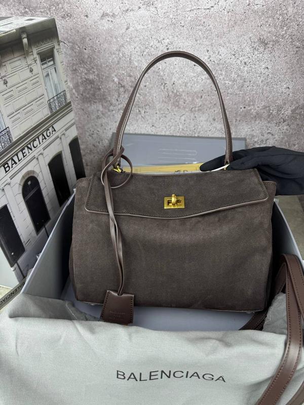 Balenciaga Rodeo Chocolate Gold ▫️Цена-5100 грн ▫️Материал: натуральная замша ▫️Размер: 29х20х9 см ▫️Ремешок 120 см ▫️Внутри лого ▫️Кожаная подкладка ▫️Два больших отделения + карманы ▫️Металлическая брендированная фурнитура ▫️Комплектуется в две брендированные коробки, пыльник, документы