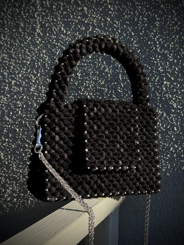 Сумочка из бархатных бусин Размеры: 17,5 | 12 | 7,5 (высота с ручкой 22 см) Длина цепочки - 120 см