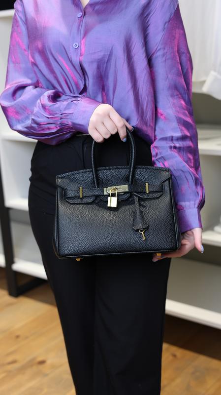 Birkin black 25 Натуральная кожа 💜 📌Арт: 9002P: 🔗 Размер: 25х19х14 🔗 Материал: натуральная кожа Сумка выполнена из натуральной кожи. Внутри одно большое отделение и два боковых кармашка, один застегивается на молнию, второй открыт. Подкладка из натуральной кожи. Закрывается сумочка благодаря фирменной застежке и замком. Фурнитура, металлическая золотистого цвета. Упаковка: бумажная коробка, бумага, наполнитель.