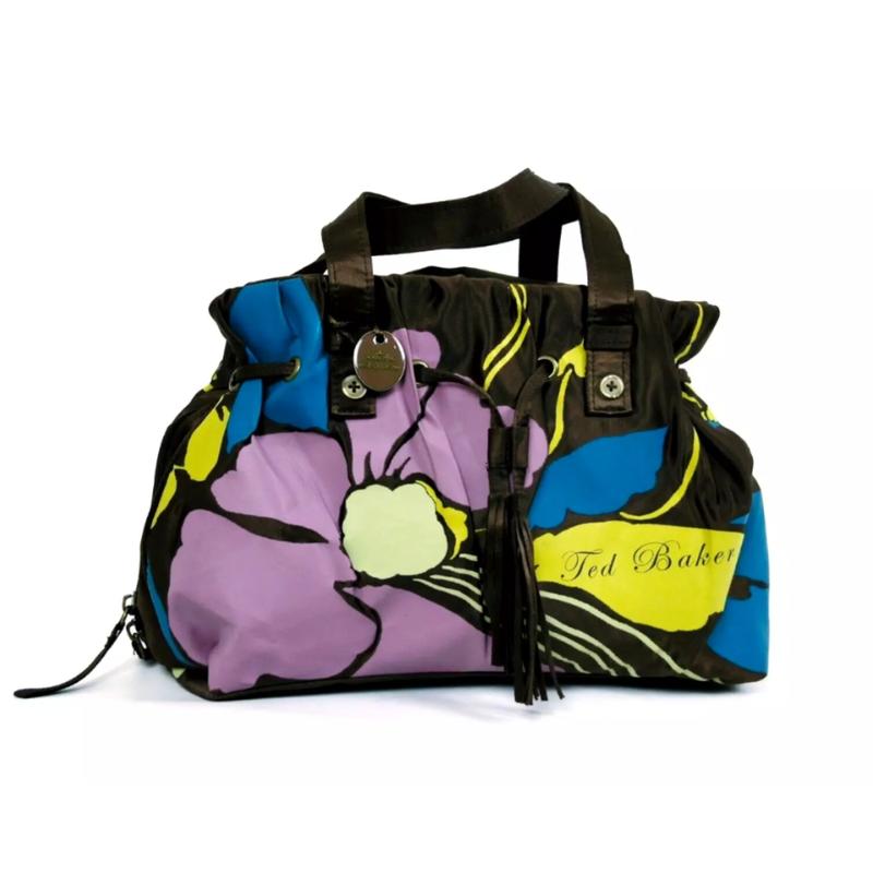 Сумка женская Ted Baker, из ткани красивого коричневого цвета с разноцветным принтом, 3 больших отделения на молниях, с зеркальцем. Размер: 28*20*14 см