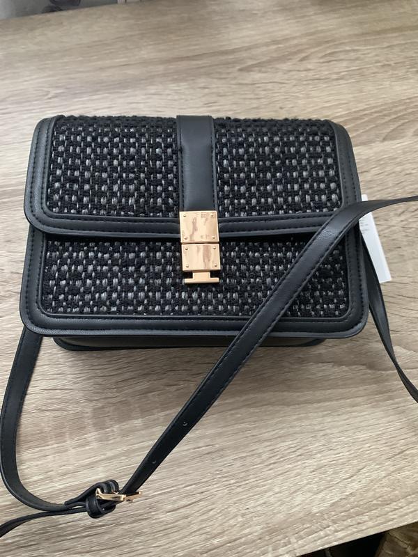 Сумка через плечо из структурированной ткани. Узкий регулируемый ремень через плечо, клапан с металлической застежкой. С подкладкой. Глубина/толщина 7 см. Высота 16 см. Ширина 21 см. № продукта:1216745001 Весы:288 г Размер модели:Рост модели 177 см/5 футов 10 дюймов, размер WEAR. Стиль аксессуаров:Сумка-мессенджер Описание:Черный, Твердый