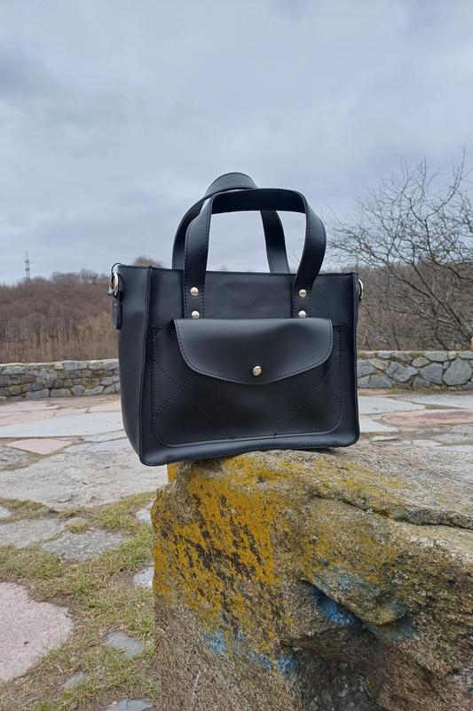 Изготовлена из мягкой экокожи Имеет 1 отделение, 2 внутренних кармана и 1 наружную Дополнительный ремешок в комплекте Размер: 28×22×11 см