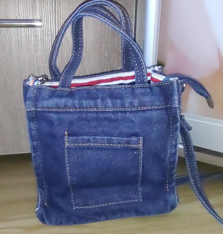 Женская джинсовая сумка на молнии с ручками и длинным ремешком в комплекте. Сумочка маленькая, но очень вместительная. Нова. Параметры: Высота 17 см. Длина 19 см. Глибина 8 см. Короткі ручки 10 см. Длинная ручка регулируется