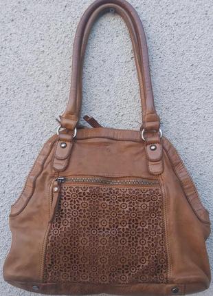 кожаная, длина30,высота24,ширина7см, длина ручек 50см.
