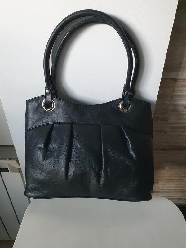 сумка из натуральной массовой кожи на двух коротких ручках.меет одно отделение с внутренним карманчиком, закрывается на молнии. размер высота по центру 20см,ширина 27см, дно 7 на 27см