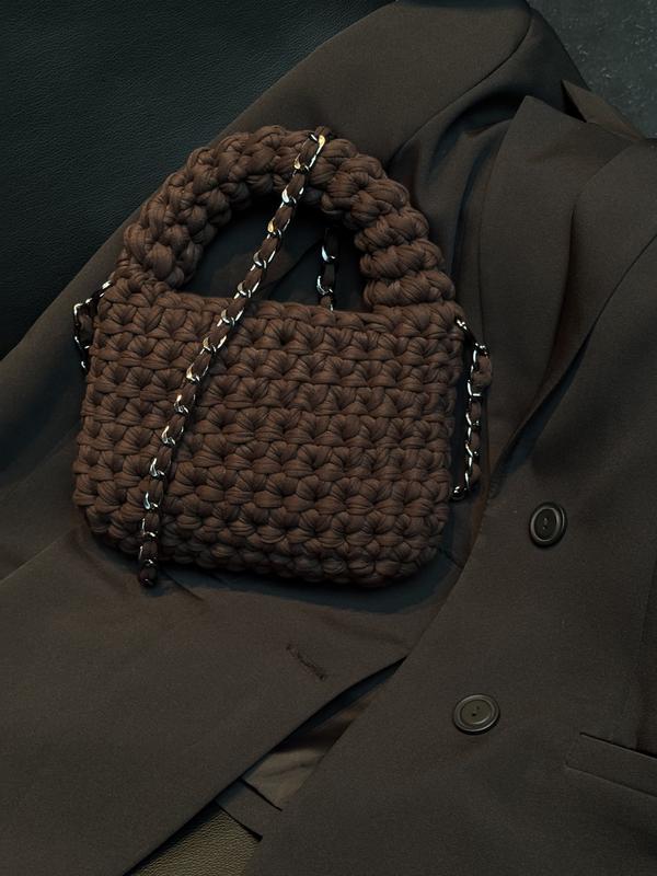 Сумочка связана из трикотажной пряжи в цвете Шоколад