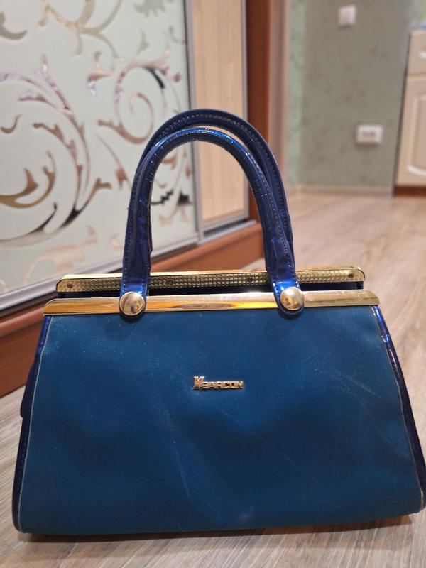 Красивая женственная сумочка. В сине-серебристом цвете с золотистыми вставками. Является очень вместительной, так как имеет много карманов в середине (6 шт.)