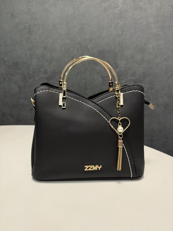 Сумка изготовлена из искусственной кожи, имеет две короткие металлические ручки и одну длинную из искусственной кожи. Внутри имеет один большой отдел на молнии и два по бокам на кнопке. Фурнитура в цвете золото. Размер 18см Х 23см Х 11см.