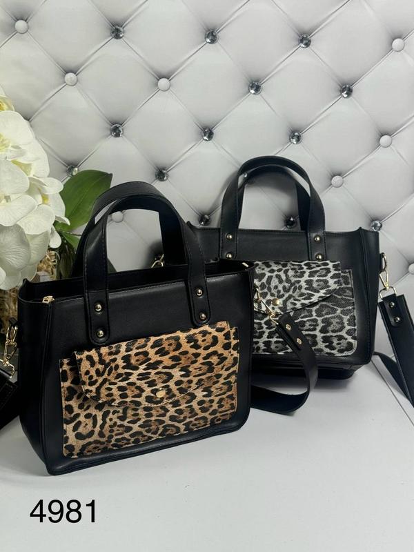 📣Новинка📣 Код 4981 Екошкіра Туреччина чорний+ леопардовий принт (на кишені) 28 см ширина. 22 см висота. 11 см глибина. Висота ручок 12 см. Висота плічного реміня 45 см . Довжина плічного ременя 100 см з карабінами. Одне відділення на блискавці. Всередині кишеня для телефона та кишеня на блискавці. На лицевій стороні кишеня під клапаном.