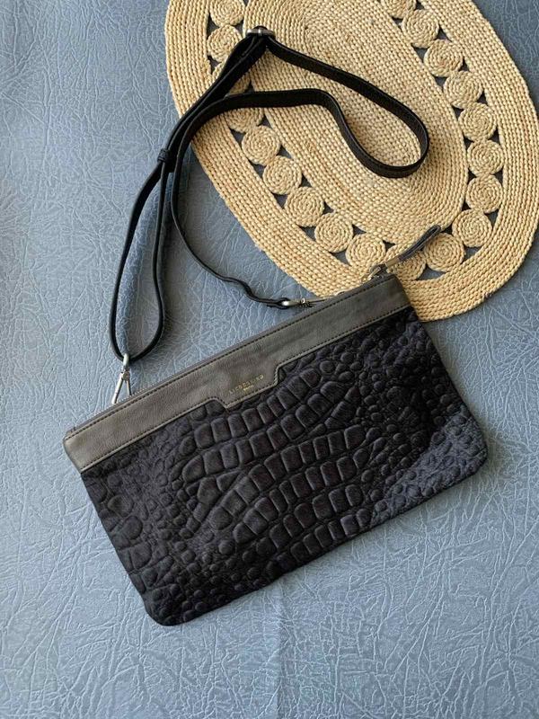 Меховой кожаный клатч LIEBESKIND BERLIN черно-серый размер 19/31см длинный ремешок не родной