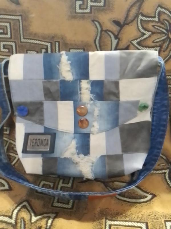 ручная работа, сшита из кусочков ткани, оригинальная, без замка, не ношеная, в единственном экземпляре на длиной ручке, высота 34, ширина 36.