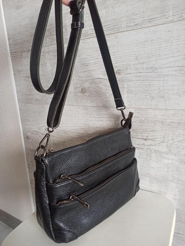 небольшая кожаная сумочка через плечо известного турецкого бренда хорошего качества. Имеет много отделений. Размеры: 30х20х10 см. Пояс регулируется по длине.