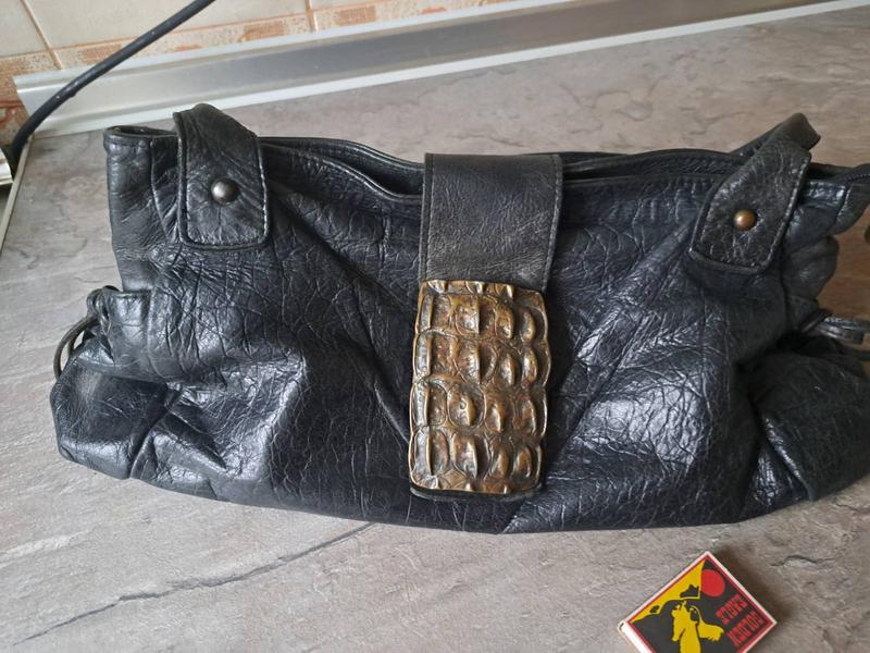Черная. Симпатичная сумка из натуральной кожи. Пряжка достаточно тяжелая. кармашек на молнии (работает) + кармашек для мобильного телефона. Высылаю наложкой при условии частичной подписки (100 грн) или, по желанию, полной оплаты. Подписка идет на оплату услуг транспортной компании в случае отказа от товара.