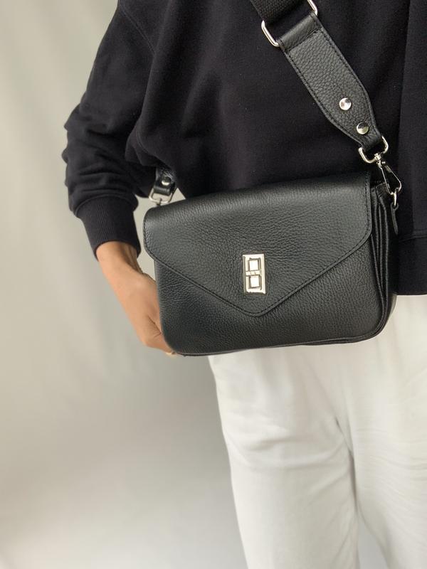 Женская кожаная черная сумка Топова модель Очень практичная по удобству Есть карманчик и сзади Ремень классный и регулируется