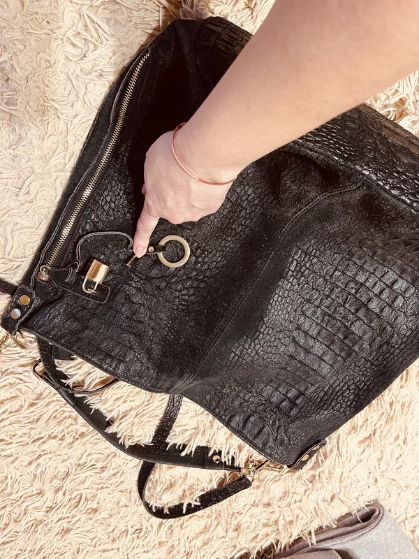 Ну, очень крутая! Боки - крокодил замша Низ - крокодил кожа Очень вместительная с двумя ручками (короткой и длинной)